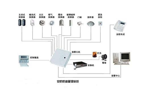 防盜報警系統(tǒng)由報警主機、紅外雙鑒探測器、聲光報警器等設(shè)備組成。